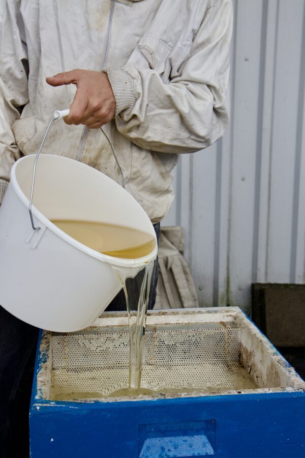En perfekt sesong gir rundt femti kilo honning per kube, men i en dårlig sesong er det under ti. I år produserte Griegbiene omtrent tretti kilo. Med andre ord: det er mye bæring, og dermed viktig å løfte korrekt. Som birøkter bruker han bare en femtedel av tiden med biene. Resten er logistikk, kjøring og bæring. Mye bæring. Han gjør alt selv – fra start til slutt. Det er et ensomt yrke.